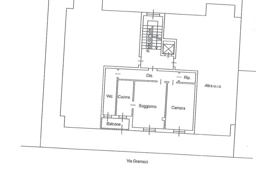 Appartamento posto al secondo piano con ascensore e composto da: ingresso, soggiorno, cucina abitabile con balcone, bagno e camera da letto matrimoniale oltre a ripostiglio. Annessa cantina.